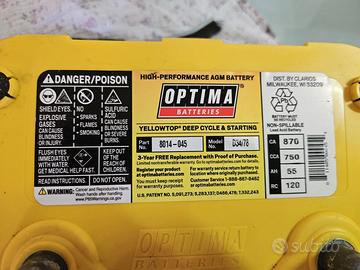 OPTIMA Batteries High Performance D34/78 YellowTop Dual Purpose Sealed AGM Car, Truck and SUV Battery, 750 CCA, Dual Terminal, Maintenance Free, Versitile Mounting - causa passaggio altra vettura vendo batteria di 1 anno di vita, montata su Chrysler GrandVoyager . Batteria 55Ah . costo acquisto anno 2024 - €. 268,00 + iva - NO TRATTABILE