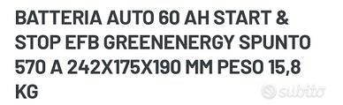 BATTERIA AUTO 60 AH START & STOP EFB GREENENERGY SPUNTO 570 A 242X175X190 MM PESO 15,8 KG Per errato acquisto vendo batteria come nuova con stato al 100%