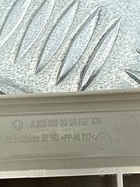 Battitacco per Mercedes-Benz Classe S W222, versione anteriore destra (passeggero), colore beige con inserto in alluminio satinato. Codice ricambio A2226808235. Questo profilo soglia è progettato per offrire protezione e finitura estetica alla zona ingresso porta anteriore. Il componente è privo di elementi luminosi (non LED) e non presenta scritte retroilluminate. Ricambio autentico smontato da vettura Classe S, adatto al ripristino estetico con perfetta integrazione nel design originale.