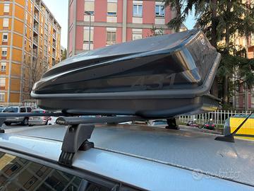 Box colore nero, Universale adatto a qualsiasi tipo di barra portatutto, capacità 430 litri