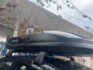 Praticamente nuovo, usato due volte poi sempre tenuto in garage imballato. Colore nero goffrato, doppia apertura, da entrambi i lati. Consegna a mano, sono a ostia. Robusto e capiente, risolve davvero i problemi di trasporto. Lunghezza 190 cm, 480 litri di capacità