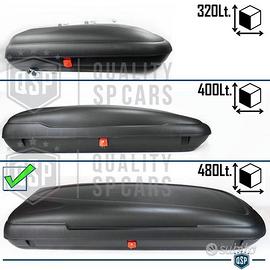 Baule, Box Tetto Auto d'Eccellenza 480LT | Effetto Fibra di Carbonio, Omologato e Certificato TÜV (Ente di controllo Tedesco) | MADE IN ITALY Dimensioni 200Cm x 79Cm x 38Cm