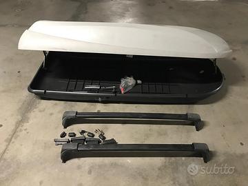 Vendo box per tetto auto con barre se compatibili usato poco della Camtek portata 50 Kg