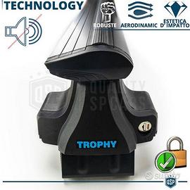 Barre Portatutto da Tetto per Ford S-Max, in ALLUMINIO Estruso NERO | Barre Portabagagli Originali Trophybars, Versioni Prive di Corrimano - Rail + Baule, Box Tetto Auto d' Eccellenza 320LT | Effetto Fibra di Carbonio, Omologato e Certificato TÜV (Ente di controllo Tedesco) | MADE IN ITALY Prodotto dal Design Curato ed Eccellenza Certificata che non Pregiudica l'Estetica o la Sportività del Veicolo sul Quale Viene Installato. - Certificazioni di Qualità e sicurezza TÜV - Eccellenza dei Materiali """"Dettagli - Tatto"""" - Aerodinamica e Resistenza Alle Intemperie Testata - Antifurto System (Chiusura a Chiave) - Installazione FACILE COMPATIBILITÀ: - FORD S-MAX (DAL 2015>) SENZA Corrimano **Anche con Versioni Tetto in Vetro** DETTAGLI TECNICI BARRE: - Applicazione: Su Auto con Tetto Liscio - Bloccaggio: Antifurto Lock System - N° Serrature: 4 - Materiale: Alluminio Estruso - Colore: Nero - Finitura: Traslucida - Peso: 4,4Kg - Dimensioni: 132Cm x 2,6Cm x 8Cm - Potenziale di carico: 75Kg - Confezionamento: Originale - Specifiche tecniche: Alta resistenza allo Schiacciamento e Graffi DETTAGLI TECNICI BAULE: - Materiale: Polipropilene a Iniezione - Colore: Carbonio Nero - Finitura: Traslucida - Peso: 11Kg - Dimensioni: 132Cm x 78Cm x 34,5Cm - Potenziale di carico: 55Kg - Capienza di Carico: 320Lt - Confezionamento: Originale - Resistenza Schiacciamento: 55Kg - Certificazioni e Omologazioni: TÜV PER INFO CONTATTARE AL 3927091031 ANCHE LINEA WhatsApp OPPURE VIA E-MAIL: rtautoitalia2018@libero.it CONSEGNA: - Effettuiamo Spedizioni 24-48H in TUTTA ITALIA - Ritiro in Sede PAGAMENTI: - PayPal - Con Carta - Bonifico Bancario - Alla Consegna con Contrassegno