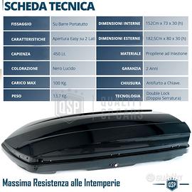 Baule Box Tetto per MINI Portabagagli 450Lt NERO
