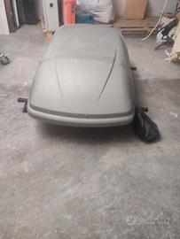 Baule per auto compresa di barre tetto e fissaggi vari. Montato prima su BMW 320 del 2011. In buono stato. Per più info 329 3443178