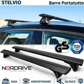 Barre Portatutto Specifiche per Alfa Romeo Stelvio con Profilo Integrato, Portabagagli in Alluminio Estruso Nero, ORIGINALI Nordrive EVOS SILENZIO IN-RAIL Portata 100Kg + Baule, Box Tetto Auto d' Eccellenza 320LT | Effetto Fibra di Carbonio, Omologato e Certificato TÜV (Ente di controllo Tedesco) | MADE IN ITALY Prodotto dal Design Curato ed Eccellenza Certificata che non Pregiudica l'Estetica o la Sportività del Veicolo sul Quale Viene Installato. - Certificazioni di Qualità e sicurezza TÜV - Eccellenza dei Materiali ""Dettagli - Tatto"" - Aerodinamica e Resistenza Alle Intemperie Testata - Antifurto System (Chiusura a Chiave) - Installazione FACILE COMPATIBILITÀ: - Per Alfa Romeo Stelvio (dal 2016>) con profilo integrato (Railing Bassi, Corrimano Bassi) DETTAGLI TECNICI BARRE: - IL PACCO INCLUDE: 2 Barre Portatutto, 2 Chiavi Serratura - COLORE: Nero - ATTACCO: Su Tetto con Profili Integrati - TECNOLOGIA: Aerodinamica Testata - EFFICIENZA: Carico Max 100 Kg. - MONTAGGIO: Aggancio su Rail Bassi - MATERIALE: Alluminio Estruso + PVC - DURATA STIMATA: Alta resistenza allo Schiacciamento e Graffi - CERTIFICAZIONI: Omologate GS-TÜV DETTAGLI TECNICI BAULE: - Materiale: Polipropilene a Iniezione - Colore: Carbonio Nero - Finitura: Traslucida - Peso: 11Kg - Dimensioni: 132Cm x 78Cm x 34,5Cm - Potenziale di carico: 55Kg - Capienza di Carico: 320Lt - Confezionamento: Originale - Resistenza Schiacciamento: 55Kg - Certificazioni e Omologazioni: TÜV PER INFO CONTATTARE AL 3927091031 ANCHE LINEA WhatsApp OPPURE VIA E-MAIL: rtautoitalia2018@libero.it CONSEGNA: - Effettuiamo Spedizioni 24-48H in TUTTA ITALIA - Ritiro in Sede PAGAMENTI: - PayPal - Con Carta - Bonifico Bancario - Alla Consegna con Contrassegno