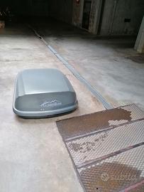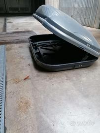 Vendo baule portatutto per auto con capacità di 420 litri, ideale per vacanze in famiglia, campeggio o attrezzatura sportiva. Il box è spazioso, aerodinamico e permette di caricare comodamente fino a 3-4 borsoni o valigie medie. Caratteristiche principali: Capacità: 420 Litri. Dimensioni: 145x94x42 cm. Montaggio: Sistema di fissaggio rapido universale (compatibile con la maggior parte delle barre portatutto). Stato:, perfettamente integro, senza crepe e resistente alle intemperie.