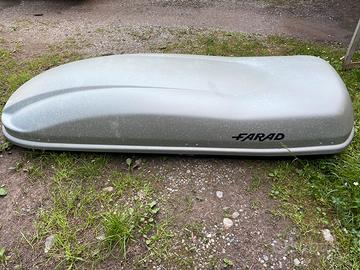 Come da titolo vendo baule portapacchi Farad, modello Marlin n11 da 530 L., in ottimo stato. Era montato su camper, a me non serve. Non spedisco consegna a mano.