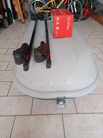 Baule per tetto auto comprensivo di barre di fissaggio. Barre utilizzate non più di 5 volte.
