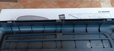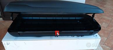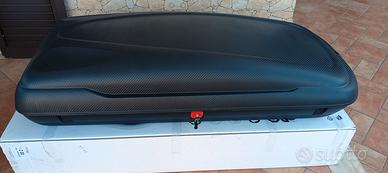 Box baule per tetto auto da 400 litri, realizzato in polipropilene. Il box tetto auto non assorbe gli odori e non trattiene umidità. Dispone di un semplice sistema di assemblaggio ed è un prodotto italiano ecosostenibile. Dal design sportivo ed un effetto carbonio ad alta definizione. Il box portatutto per auto è dotato di chiusura di sicurezza anteriore, assale di chiusura in alluminio e supporti in acciaio al 100%. Omologato e certificato TUV portata max 75 kg Dimensioni: 169x79x37,5 cm.