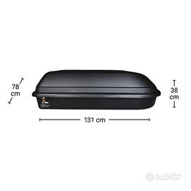Box in polipropilene iniettato (coperchio goffrato e fondo liscio), completamente impermeabile e trattato per resistere a radiazioni UV e graffi. Nella parte interna del fondo sono presenti delle alette in plastica per evitare che il contenuto del box non scivoli. Il box è dotato di una serratura laterale con chiave per la chiusura centralizzata ed il gancio frontale di sicurezza. (Vendo solo baule) e ritiro a mano
