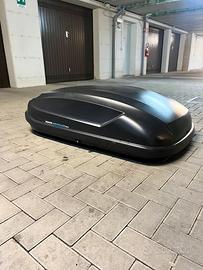 Baule da tetto ‘modello bermude 200’ da 375 L. Leggermente graffiato sopra. 1 anno di vita.