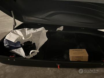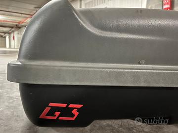 Come da titolo vendo bauletto tetto auto G3 All Time 400 comprensivo di kit per installazione su barre portatutto e 2 chiavi.