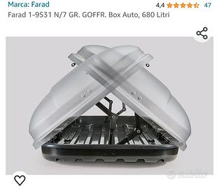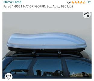 vendo box auto (baulotto) capienza 680lt larghezza 100cm lunghezza 210cm altezza 42cm apertura ambo i lati usato 2 volte, perfetto come nuovo