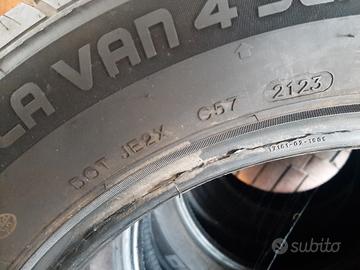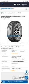 vendesi treno di gomme praticamente nuove (comprate e utilizzate pochissimo) Rotalla modello setula van 4 stagioni m+s 215/60/R17C 109/107T. le gomme erano montate su un Renault Trafic, ma sono compatibili da libretto con Fiat Talento e Opel Vivaro. 2 Gomme hanno DOT 2023 stato usura 95% (passaruota circa 9 mm) 2 gomme dietro hanno DOT 2020 stato usura 85% (passaruota circa 8 mm). allego anche la foto del costo da nuove delle gomme. pneumatici praticamente nuovi tenuti lontano dalla luce del sole e dalle intemperie, vendo causa cambio mezzo e incompatibilità con il nuovo