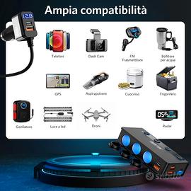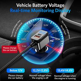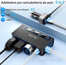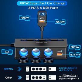 BESTEK Caricabatterie da Auto 180W, Caricatore da Auto USB-C PD USB QC3.0, Adattatore per Accendisigari 12V/24V con 3 Prese & 6 Porte con Display LED per iPhone Dash Cam.