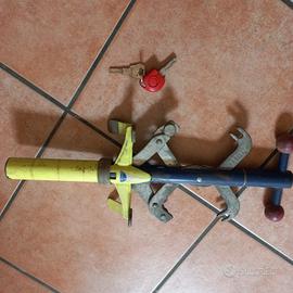 Bloccapedali antifurto per tutte le autovetture. Completo di doppia chiave principale e di scorta. Si posizione tra i pedali frizione e freno e ne blocca l'utilizzo immobilizzando l'autovettura.