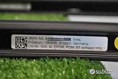 Ricambi auto originali BMW e MINI Coppia barre tetto longitudinali nere. Barra longitudinale sinistra e destra colore nero lucido Shadowline. Mancorrenti nero lucido. VIN: AH34789 OEM: 51 13 8073211 / 51 13 8073212 / 51138073211 / 51138073212 Compatibile con i seguenti modelli / serie: 3' G21 316d B47B 318d B47B 318i B48C 320d B47D 320d XD5O 320dX B47D 320dX XD5O 320e B48X 320eX B48X 320i B46D 320i B48C 330d B57 330d B57P 330dX B57 330dX B57P 330e B48X 330eX B48X 330i B48D 330iX B48D M340dX XD5T M340iX B58D 3' G21 LCI 316d B47B 318d B47B 318i B48C 320d B47D 320dX B47D 320e B48X 320eX B48X 320i B46D 320i B48C 320i B48P 330d B57P 330dX B57P 330e B48X 330eX B48X 330i B48D 330iX B48D BMW ALPINA B3 S58T BMW ALPINA D3s B57R M340dX B57R M340iX B58D M340iX B58N 3' G81 M3 Touring M3 Comp. M xDrive S58T 3' G81 M3 Touring LCI M3 Comp. M xDrive S58T Art. 14316 Spedizione in tutta Europa oppure ritiro presso la nostra sede: Via Zenale 66, Garbagnate Milanese, 20024 (MI), Italia Contattaci al: +39 3515363286 anche su WhatsApp +39 0292272340
