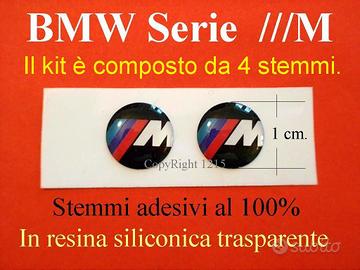 I kit stemmi ///M composti da 2 e da 5 pezzi sono ricoperti da una resina trasparente per mantenere inalterati i colori nel tempo. Si possono applicare sui cerchi, sullo sterzo, sul cruscotto o all’interno dell’abitacolo.