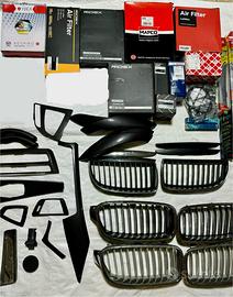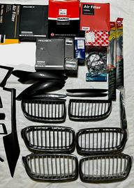 Ricambi e Accessori nuovi per Bmw tra cui griglie (reni) anteriori, gomme pedaliera, modanature interne in carbonio, debimetro, pastiglie freno anteriori e posteriori con sensori, filtro aria, filtro abitacolo, filtro olio, spazzole tergi cristalli anteriori e posteriore, candelette, luce cielo abitacolo interno, sensori pressione pneumatici, fendinebbia, sensore parcheggio, tasto chiusura portellone compatibili con i seguenti modelli: