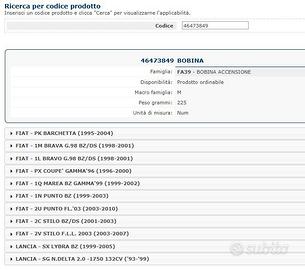 vendo causa errato acquisto bobina NGK mai usata, ancora nel suo imballo originale, per motori Fiat Lancia 1.8 (Barchetta, Brava, Bravo HGT, Coupé, Marea, Punto HGT, Stilo, Lancia Lybra) codice 46473849 compatibile con l'originale Hitachi CM11202.