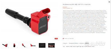 acquistate per golf 7r e mai montate in quanto ho venduto la vettura, pagate 240 euro , Le bobine di accensione APR sono progettate per essere una sostituzione plug-and-play diretta delle bobine di accensione di fabbrica e fornire una maggiore produzione di energia, garantendo una scintilla più forte e coerente.