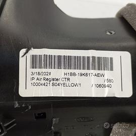 Bocchetta Aria Centrale Plancia Ford Puma OEM H1BB-19K617-AEW, un diffusore aerazione centrale cruscotto originale Ford Puma, compatibile con i modelli prodotti dal 2019 al 2024. Questo elemento ventilazione bord è un ricambio completo, in stato molto buono, caratterizzato da una finitura lucida, griglie regolabili e un pulsante di avaria integrato al centro. Il codice OEM, H1BB-19K617-AEW, è inciso sulla sua carcassa. Include una cornice decorativa con attacchi laterali cromati e guarnizioni di tenuta intatte. È una bocchetta aria essenziale per il sistema di ventilazione e per la ricondizionamento estetica della plancia centrale del veicolo.Ricambio noto come: diffusore aria centrale cruscotto, bocchetta ventilazione centrale, griglia aerazione plancia, unità aerazione centrale, pannello bocchetta aria, diffusore aria Ford Puma, elemento ventilazione cruscotto, comando aria centrale; e conosciuto a livello internazionale sotto forma di: central air vent, dashboard air outlet, HVAC vent grille, center air diffuser, climate control vent, dashboard vent assembly, air vent unit, Ford Fiesta vent.