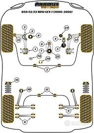 Boccole anteriori dei puntoni posteriori modello Black Series realizzate da Powerflex per Mini Cooper S R53