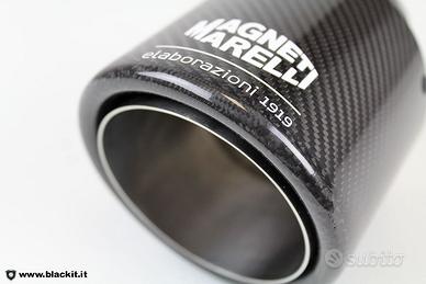 Bombardone 2.0 Carbon Magneti Marelli SS500R2C per 500 e 595 Abath con terminali in vera fibra di carbonio con finitura lucida e logo Magneti Marelli sotto vernice. Non è un semplice adesivo che viene via con il tempo.