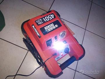 black e decker, 450 amp, mai usato, non sapendo bene come funziona lo vendo a chi sa metterci le mani,le luci si accendono quando messo in carica,varie funzioni accensione, compressore,torcia, si vende cosi come da foto