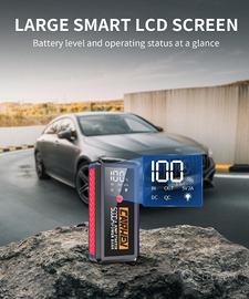 【DESIGN OTTIMIZZATO】CARHEV avviatore per auto con schermo LCD per un monitoraggio chiaro dello stato dell'avviatore e della carica residua, è abbastanza compatto da poter essere riposto nel vano portaoggetti o nel bagagliaio dell'auto. Il materiale dell'involucro con grado di protezione IP65 protegge la struttura interna da pioggia, polvere e urti esterni, rendendolo ideale per ambienti operativi complessi.