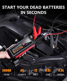 【AVVIATORE AD ALTA POTENZA】Con una corrente di picco fino a 5000 Ampere, CARHEV Avviatore di Emergenza per Auto può avviare qualsiasi veicolo a 12V in pochi secondi (fino a 8.0L a benzina e 8.0L a diesel). È adatto per camion, moto, motoslitte, ATV, UTV, tosaerba, yacht e molto altro. Avvia l'auto rapidamente, anche in ambienti estremi (-20°C ~ 60°C), senza bisogno di attendere l'assistenza stradale!