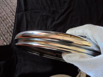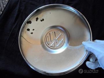 Vendo borchia cromata con doppio bordo per Volkswagen Karmann Ghia o montabile anche sul Maggiolino. Nuova, fondo di magazzino, proveniente da un concessionario Volkswagen.