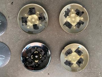 vendo 4 copri borchie fondo nero con logo 500 ( 2 ok e 2 con alcuni ganci rotti) + 6 copri borchie sondo grigio con logo 500 adesive nuove + 4 copri borchie argento usate