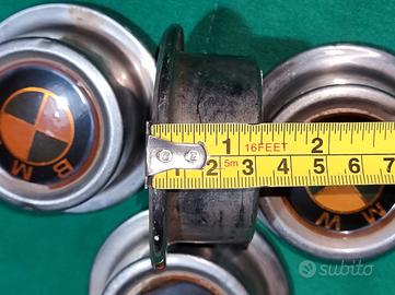 Serie di 4 borchie copri mozzo per BMW d'epoca. Diam 8 x h 3,5 cm ca. Buone condizioni solo normali segni del tempo ed usura. Il prezzo è comprensivo di adeguata e tracciabile spedizione solo per l'Italia. Astenersi perditempo massima serietà, grazie.