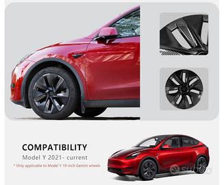 Vendo set di borchie/copricerchi aftermarket per Tesla Model Y, compatibili con cerchi originali Gemini da 19” (Model Y dal 2021 in poi).