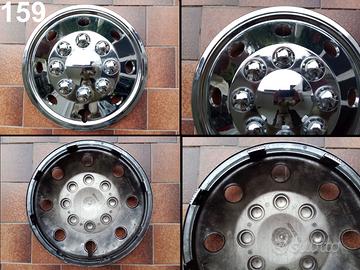 159 = Borchia Copricerchio bombata – per Van (Ducato / Sprinter ...) – finitura cromata – diametro cerchio 15” - usata, clip di fissaggio integre, ottime condizioni estetiche = 20,00 €
