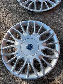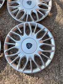Vendo 4 copricerchi lancia misura 15” pollici a 3 copricerchi manca un gancio ciascuno ma si tengono comunque al cerchio vendo tutto il set a 15 euro non spedisco ritiro a mano