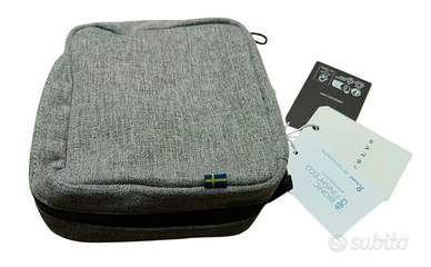 Questa elegante borsa tech organizer di Volvo Cars è progettata per mantenere in ordine e al sicuro piccoli dispositivi, cavi e caricabatterie. Realizzata in poliestere riciclato, dispone di tre scomparti separati e di nastri elastici per fissare i cavi, offrendo una soluzione pratica per organizzare i tuoi accessori tecnologici durante gli spostamenti.