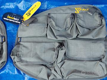 le borse sono in cordura,super resistenti e adatte al trasporto indumenti o piccole stoviglie.