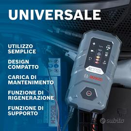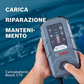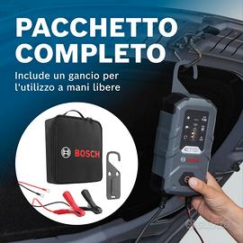Contenuto della confezione: 1 caricabatterie Bosch C70 con supporto, cavo di alimentazione, cavo con morsetti rimovibili, cavo con occhielli, istruzioni per l'uso e comoda custodia per il trasporto