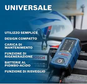 Universale: con una corrente di carica fino a 5 A e la compatibilità con le batterie a piombo-acido e al litio, questo alimentatore è più potente dei normali caricabatterie standard Adatto a molti tipi di veicoli: Carica batterie al litio e al piombo-acido AGM, GEL, SLI e EFB da 6 - 12 V, per auto, scooter, moto, auto d'epoca, furgoni, camper, e altro Funzionamento intelligente: Il microprocessore integrato assicura una ricarica più rapida - In caso di blocco dell'alimentazione, salva l'ultima impostazione e riprende la carica appena possibile Con carica di mantenimento e funzione rigenerativa: il caricabatterie è adatto all'uso nelle pause invernali e per estendere la durata della batteria Funzione di risveglio per tentare di avviare il processo di carica di una batteria in stato di scarica profonda (da 0,5 V a 3,75 V) Contenuto della confezione: 1 caricabatterie Bosch C40-Li con supporto, cavo di alimentazione, cavo di ricarica con morsetti rimovibili, cavo con connettore rapido e comoda custodia per il trasporto Alta sicurezza e durata: protezione contro surriscaldamento e cortocircuiti con spegnimento automatico, protezione contro l'inversione di polarità, con resistenza IP65 a polvere e schizzi d'acqua