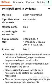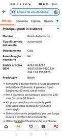 Fornitura: 2 cilindri freno a ruota (diametro del pistone 20,6 mm), 4 ganasce freno (larghezza 40 mm), set di molle