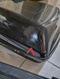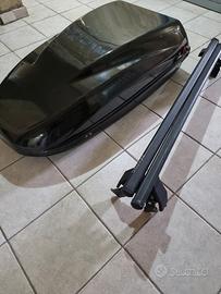 Box auto universale compreso di Barre portatutto MENABO , usato 2 volte ,praticamente nuovo,adatto a tutte le auto senza barre longitudinali sul tetto . 200€.