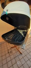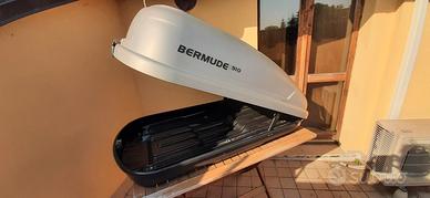 Box auto Bermude 910. Attacchi sistema quick fix, con pulsante di blocco. Dotato di due chiavi gemelle per serratura perfettamente funzionante. Portata massima 75 kg come da foto etichetta.