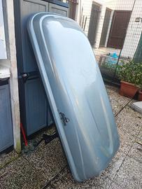 Vendo box da tetto Fapa (marca italiana) in buone condizioni generali. Colore grigio chiaro metallizzato lucido Design aerodinamico e capiente (ideale per valigie, attrezzatura sportiva, sci o bagagli familiari) Sistema di fissaggio con cinghie nere regolabili e attacchi rapidi (compatibile con la maggior parte delle barre portatutto) Logo Fapa in rilievo sul lato (con il caratteristico elefante) Presenta segni d’uso normali (piccoli graffi e qualche segno del tempo)