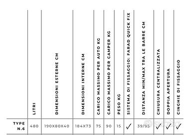 Vendo Box Auto Marca Farad Modello Marlin N6. Apertura su ambo i lati come da foto. Usato 3 volte come nuovo. Completo di cinghie e ganci di fissaggio, doppia chiave. Federico 3204280754