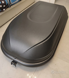 Box da tetto porta oggetti per auto Rax diamond 340 grigio scuro, comprato nel 2022 e usato pochissimo (solo i viaggi estivi), vendo per inutilizzo e - con grande rammarico - mancanza di spazio. E' un ottimo compromesso per chi cerca un prodotto economico ma affidabile, essendo realizzato in polipropilene iniettato ad alta resistenza e trattato per resistere al sole e ai graffi. Il box è dotato di sistema di chiusura centralizzata con serratura laterale (due chiavi in dotazione) e gancio di chiusura frontale. Si fissa agevolmente alle barre portapacchi dell'auto con le quattro fascette in dotazione visibili nella foto (le barre portapacchi non sono comprese nella vendita). Il peso a vuoto è di circa 11 kg e le dimensioni sono 131x78xh38 cm circa; il colore è grigio scuro (le venature bianche che si vedono in foto sono dovute alla trama a diamante in alcuni punti e alla presenza di polvere). Visionabile all'acquisto, solo persone seriamente interessate e disponibili al ritiro diretto su Foggia città. Non gestisco spedizioni. Per ulteriori info, primo contatto via messaggio in risposta all'inserzione. Antonio