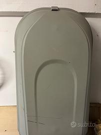 Vendo baule da tetto misure, 130 per 76 altezza 35 cm, manca la chiave poiché smarrita e un gancio per le barre. Non spedisco consegna a mano
